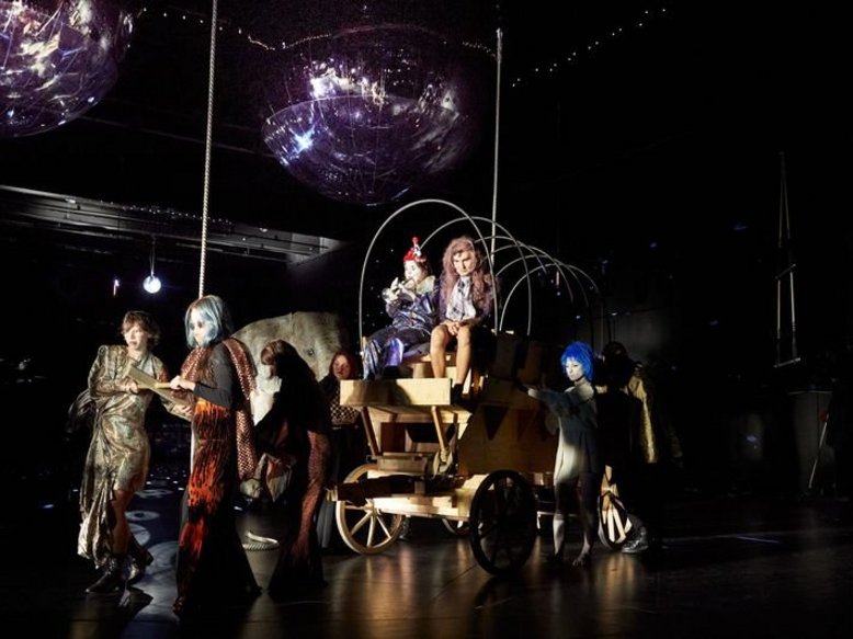In den räumlichen Entwürfen von Tomás Saraceno üben die Schauspieler:innen des RambaZamba Theaters ihr akrobatisches Handwerk aus. Saracenos Werke sind durch die interdisziplinäre Zusammenarbeit von Ingenieur:innen, Architekt:innen und Biolog:innen geprägt und verwischen die Grenzen zwischen Kunst, Natur und Wissenschaft. Seine spiegelnden Sphären und aufgefächerten solar umbrellas basieren auf naturwissenschaftlichen Beobachtungen und verleihen dem unsichtbaren Netz des Lebens auf beeindruckende Weise Evidenz und Sichtbarkeit.