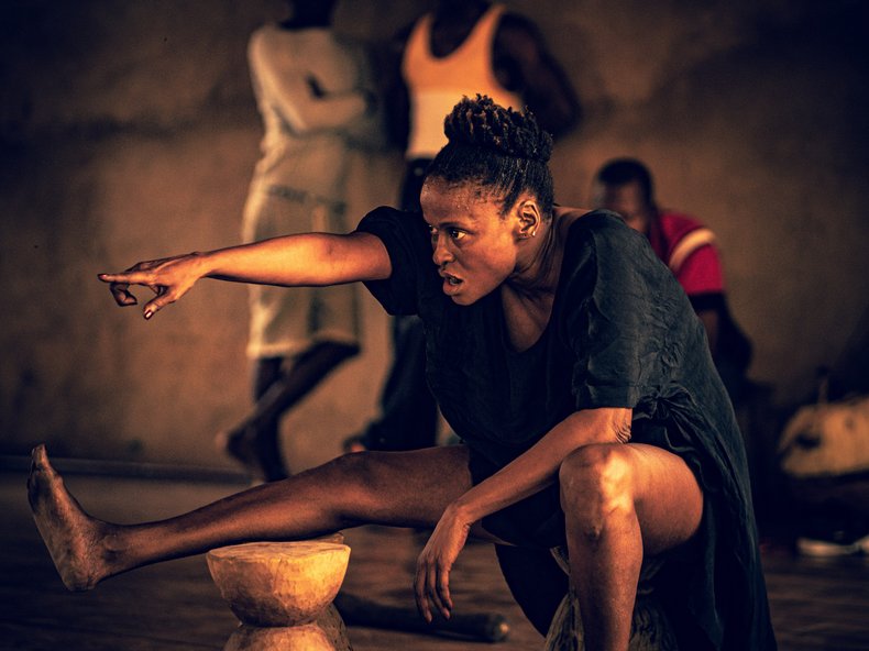 Für die Premiere von "Am Anfang" zum Festival DIE IRRITIERTE STADT verbinden sich überlebensgroße Videoprojektionen mit einer immersiven Live-Performance zu einem mythischen Raum, in dem das Publikum erleben kann, wie zeitgleich die Schöpfungsgeschichten der Dogon und der Peulh besungen werden, kontrastiert durch wissenschaftliche Sichtweisen der Schöpfungs-Geschichte.