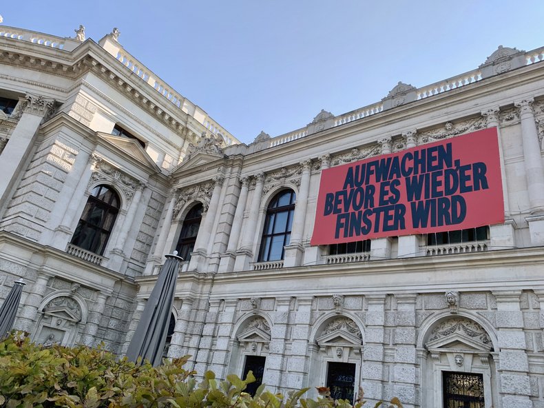 Mit der Spielzeit-Kampagne, die in diesen Tagen in Wien plakatiert wird (Grafik: Herburg Weiland, Claims: Teresa Guggenberger & Michael Wittmann), ruft das Burgtheater zu Haltung, Widerstand und Diskussion auf. „Gerade auf uns als künstlerisch Tätige kommt in diesem Zusammenhang eine besondere Rolle zu. Alles, was wir in den letzten Jahren in diesem Land an Korruption, Manipulation, Lüge und Hass erleben mussten, weist auf Zustände hin, die wir für überwunden gehalten haben. Wir können und dürfen nicht wegschauen.“ (Martin Kušej)