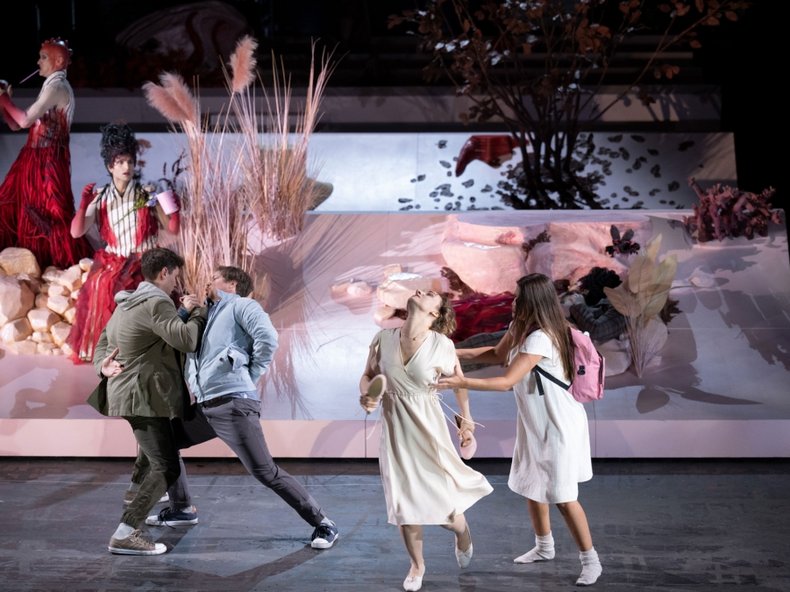 Der Wald wird so zum magischen Ort fortwährender Verwandlungen: Der Weber Bottom, der mit seinen Freunden ein Theaterstück zur Hochzeit des Herzogspaares einstudiert, verwandelt sich in einen Esel, in den sich die Elfenkönigin Titania verliebt. Und dann beträufelt auch noch Puck versehentlich die falschen Lider der schlafenden Liebenden mit dem Nektar der Zauberblume und löst dadurch ein Chaos der Gefühle aus. Am frühen Morgen ist der schöne Spuk, der sommerliche Traum, beendet und ein neuer Tag bricht an.