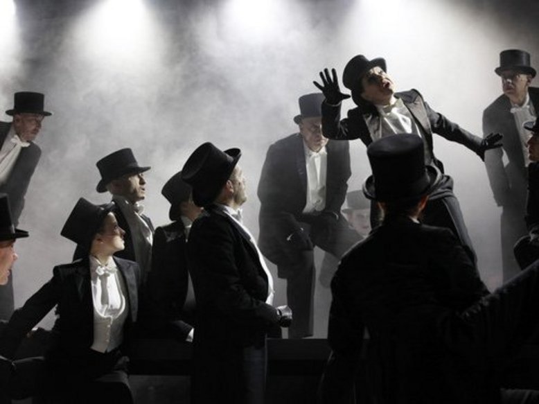 "Was ist ein Dietrich gegen eine Aktie? Was ist ein Einbruch in eine Bank gegen die Gründung einer Bank? Mitbürger, hiermit verabschiede ich mich von Ihnen und danke Ihnen, daß Sie gekommen sind." Macheath