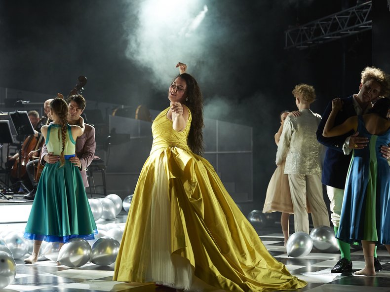 Neben der Barockmusik gibt es auch elektrisierende Techno-Einlagen. Alle fühlen sich im Tanz total miteinander und mit der ganzen Welt verbunden. Zuletzt vertreibt ein kleines Mädchen die Dämonen mit einem berührenden Lied. Die Gastgeberin kennt das Mädchen sehr genau - und auch die brennende Torte kommt ihr bekannt vor. Unter der zupackenden Leitung von Benjamin Bayl musiziert das Staatsorchester Stuttgart feinnervig Anklänge aus Antonio Vivaldis "Vier Jahreszeiten", die auch der fulminante Staatsopernchor intoniert. Gleich die rasant musizierte Ouvertüre zur Oper "Achante et Cephise" von Jean-Philippe Rameau entführt die Zuschauer mit kontrapunktischem Feinschliff in die Welt König Ludwig XIV. - und der "Sonnenkönig" geistert auch bei der dritten Air der Mänaden und beim Marsch der Satyrn und Mänaden aus dem Prolog der Oper "Semele" von Marin Marais in eindringlicher Weise durch die Hallen der Staatsoper. Zudem werden blaue und rote Drinks gereicht.
