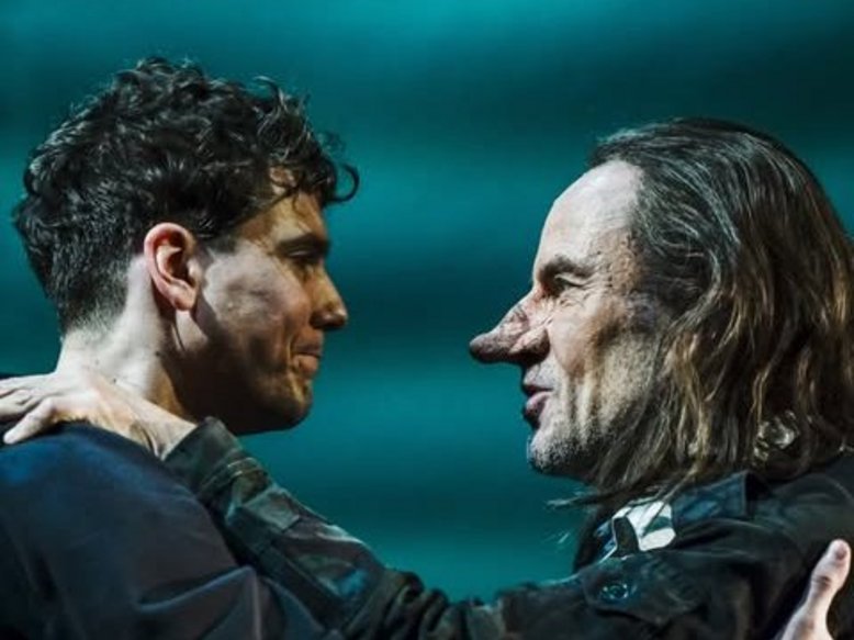 Das Frankreich Ludwig XIII. wird teilweise in entsprechenden historischen Kostümen von Ute Lindenberg beschworen. Lediglich die Hip-Hop-Einlagen geraten gelegentlich zu ausufernd. Hans Platzgumers Musik besitzt aber durchaus suggestive Momente, die gut zum szenischen Geschehen passen. Der im Jahre 1619 in Paris geborene Cyrano de Bergerac besitzt hier etwas Barock-Zeitloses, er hat Schwierigkeiten mit der überbordenden Lebenslust dieser Epoche. Er sieht sich wohl selbst als Freigeist und Libertin: "Ich hab einen Vorschlag - wir kriegen das hin - wir tun uns zusammen und bilden ein Team..." In weiteren Rollen überzeugen Sven Prietz als De Guiche, Marco Massafra als Le Bret, Reinhard Mahlberg als Intendant/Priester sowie David Müller als Montfleury und Soldat. Im Bühnenhintergrund sieht man Fechtszenen, die die Wortgefechte in sinnvoller Weise ergänzen. Der Tod hat eine dominierende Rolle übernommen, doch die Liebe überlebt.