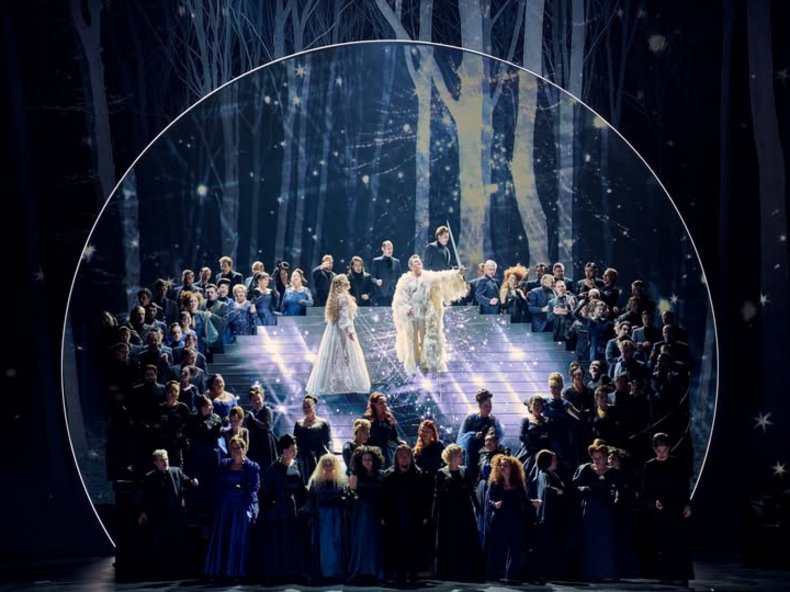 iotr Beczala ist als Lohengrin nach wir vor eine Idealbesetzung, seine A-Dur-Welt wirkt sphärenhaft und besitzt doch eine ungheure vokale Strahlkraft. Vor dem Erscheinen Lohengrins erklingt das As-Dur fast gespenstisch, bei seinem Abschied in schmerzlichem a-Moll. Das wirkt auf jeden Fall unheimlich und unwirklich, wird aber in seiner melodischen Tiefe voll ausgekostet. Hervorragend ist auch Rachel Willis-Sorensen als Elsa, deren strahlende Spitzentöne alles überragen und ihr Wesen in B-Dur einfühlsam unterstreichen. Die dämonische fis-Moll-Welt von Ortrud und Telramund wird von Joana Mallwitz mit dem Mahler Chamber Orchestra ebenfalls höchst sensibel beschworen. Dadurch erreichen die dramatischen Auseinandersetzungen zwischen den beiden Paaren eine enorme dramatische Kraft. Wolfgang Koch liefert als Telramund ein ausgezeichnetes und geradezu explosives Charakterporträt, während Tanja Ariane Baumgartner als Ortrud ihre stimmlichen Reserven bei den Spitzentönen bis zum Zerreissen anspannt. Ihre Triumphlust gipfelt mit übermäßiger Quart und kleiner Sext in einer "Zigeuner-Tonleiter". Und ihr gellendes Hohngelächter wurde noch in keiner Inszenierung so intensiv gezeigt! Sie erscheint als überragende Figur - auch angesichts ihrer Trauer um den von Lohengrin getöteten Telramund. Langweilig wird es hier nie.