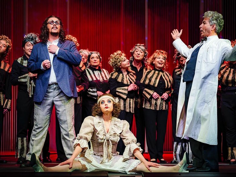 Das alles inszeniert Marco Storman als atemloses Tohuwabohu, wobei sich die extravaganten Kostüme von Yassu Yabara dem verrückten Geschehen anpassen. Barberina spaltet sich zudem in eine gesangliche und eine tänzerische Rolle auf, die die ausgezeichnete Sopranistin Maria Theresa Ullrich und Cassie Augusta Jorgensen als versierte Tänzerin überzeugend verkörpern. Schließlich zündet Casanovas Nummer nicht mehr und er wird von den Protagonisten auch nicht mehr gebraucht. Deswegen verschwindet er kurzerhand in der Muschel. Man vernimmt zudem auch noch Sapphos Liebeslieder: "Mit bebenden Erschütterungen zerreißt du mich sinnlos..." Und Casanova singt:" Im Rausch der Genüsse vergaß ich kein Glück, die Glut aller Küsse behielt ich zurück..."