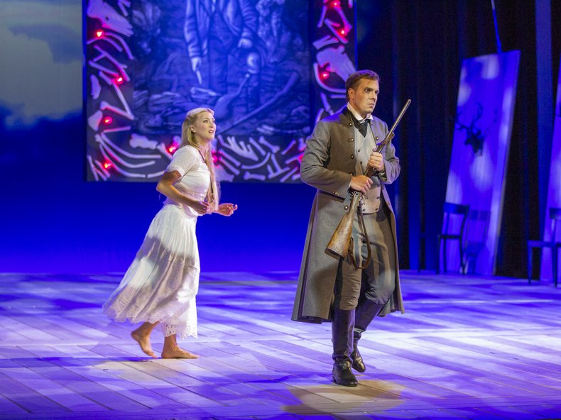 Im Mittelpunkt steht der Jägerbursche Max, ein typischer Vertreter der Epoche der Romantik. Er ist kein strahlender Held, sondern ein von Selbstzweifeln zerrissener Grübler. Um Agathe, die Tochter des Erbförsters, heiraten zu dürfen, muss er einen Probeschuss erfolgreich absolvieren. Allerdings hat er zuvor als Schütze versagt. Seine Verunsicherung treibt ihn in die Arme des Jägerburschen Kaspar, der sich bösen Mächten verschrieben hat.