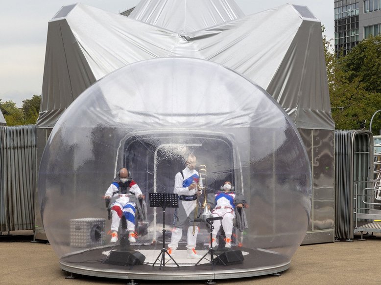 Zum Abschluss von „Junge Oper – geht raus!“ wird es unter freiem Himmel noch einmal laut. Am 19. Juni findet um 11.00 Uhr ein Gastspiel des Marabu Theaters Bonn für Kinder ab 5 Jahren am UFO im Glasmacherviertel statt. In ihrem Stück „M.O.D. – Master of Desaster“ spielen die sechs Performer*innen mit absurdem Humor, unerschütterlicher Zuversicht und blecherner Musik gegen die Sorgen und Ängste der Gegenwart an.