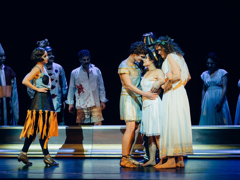 Kurz vor Veranstaltungsbeginn wird der Plan überraschend geändert: »Ariadne« und die Maskerade sollen gleichzeitig gezeigt werden! Spontan müssen sich die Künstler*innen miteinander arrangieren, Tragödie mit Komödie und Todessehnsucht mit Lebenslust kreuzen. Dabei offenbaren sich nicht nur Gegensätze, denn je näher sich die Truppen kommen, desto deutlicher wird, dass sie auch Gemeinsamkeiten haben.