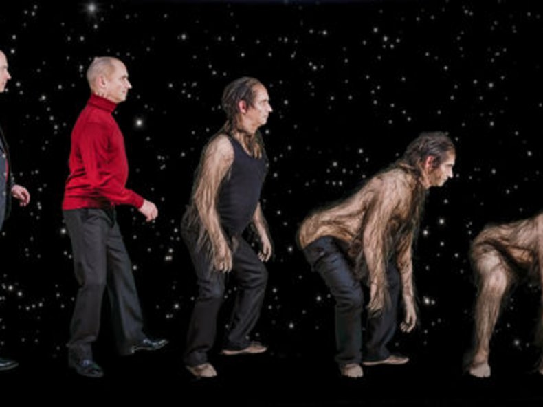 Aber auch seine Sprache verändert sich, sein Verhalten nimmt immer animalischere Züge an, er krümmt sich, verliert den aufrechten Gang und schwingt sich am Straßenrand von Baum zu Baum. Gleichzeitig wird auch die triebhafte Gefühlswelt des Menschen-Affen für seine Mitmenschen immer mehr zur Belastung. Kümmern sich zunächst noch Ärzte um ihn, wird er zunehmend zu einem Fall für die Biologie und schließlich zum zoologischen Phänomen. Man will ihn heilen, ihn verstehen, töten, retten, analysieren, sich mit ihm fotografieren, ihn befreien, ins Weltall schießen und nach seinem Tod ausstopfen.