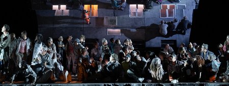 Ismaele ist in Fenena verliebt, die ihn unter großem persönlichem Risiko befreit hatte. Abigaille offenbart allerdings Ismaele ihre Liebe - und der Konflikt ist vorprogrammiert. Die durchaus mit modernen Mitteln arbeitende Inszenierung von Stefano Poda unterstreicht außerdem die choreographischen Aspekte der Handlung in ausgeprägten Ballett- und Fechtszenen, die sich auf der gesamten Bühne mit großem rhythmischem Geschick ausbreiten. Zaccaria droht, Fenena zu töten, wenn Nabucco den heiligen Platz weiter missachtet. Ismaele schreitet ein und rettet sie vor dem Tod.