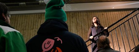 Die kanadische Choreografin Aszure Barton zählt zu den gefragtesten ihrer Zeit. Indem sie klassische und zeitgenössische Formen des Tanzes aufgreift und offenlegt, präsentiert sie ein energiegeladenes, humorvolles und vielschichtiges Bewegungsvokabular, das die Schönheit, die Zerbrechlichkeit wie auch die Widerstandskraft des menschlichen Körpers zum Ausdruck bringt. Ihre Choreografie Busk, im Jahr 2009 als abendfüllendes Werk für ihre eigene Compagnie (Aszure Barton & Artists) kreiert, bildet in ihrer Kurzfassung das Herzstück des dreiteiligen Ballettabends. Das englische Verb „to busk" bedeutet, auf der Straße oder in anderen öffentlichen Bereichen aufzutreten, um in Form von Musik, Gesang, Jonglage oder Zauberkunst Geld von Passant:innen zu sammeln. Außerdem verweist der Titel auch auf die spanische Wurzel des Wortes „buscar", was so viel wie „suchen" bedeutet. Angelehnt an diese beiden Begriffe spürt die Choreografie der wechselseitigen Beziehung zwischen Aufführung und Publikum nach und präsentiert dabei das gesamte Bewegungsspektrum des Tänzer:innenkörpers.