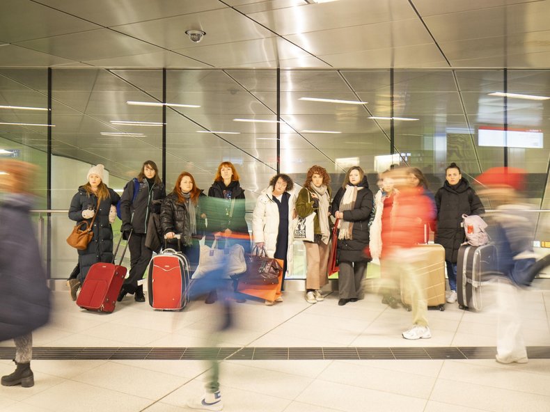 Diese »Odyssee« ist eine gemeinsame Erzählung von Menschen aus der Ukraine und aus Düsseldorf. Der Text nimmt Motive von Homer auf und basiert auf Interviews mit den Spieler*innen, mit Geflüchteten und mit denen, die im Krieg in der Ukraine geblieben sind – vielstimmig und musikalisch erzählt er von 14 Frauen und Mädchen sowie zwei Jungen, alle im Alter zwischen 11 und 56 Jahren.