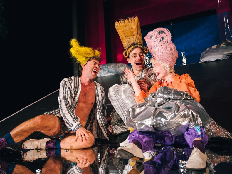 Emma Stratmann als temperamentvolle, aber auch zuletzt tief verzweifelte Effi zeigt in darstellerisch drastischer Weise auf, dass keine dieser Rollen gelingt. Die 17-jährige junge Frau ist nicht so heiratswillig und gebärfreudig, wie es sich für ein Mädchen aus gutem Hause gehört. Die Regie von Meera Theunert (Bühne: Laura Robert; Kostüme: Annabelle Gotha) wirft einen ironischen Blick auf das Berlin Ende des 19. Jahrhunderts. Als der 21 Jahre ältere Baron von Innstetten erscheint, lässt sie sich von ihren Eltern fast willenlos mit diesem verheiraten. Doch schnell bricht sie aus diesem engen gesellschaftlichen Korsett aus, läuft lieber barfuß, geht allein aus, trinkt Bier. Plötzlich erscheint Major Crampas, entsteigt den Fluten der Ostsee und spielt verführerisch mit den Muskeln. Effi verliebt sich, erliegt einem James Bond aus Hinterpommern. Der empörte Baron von Innstetten will die Scheidung, nachdem er sogar dem Major zuvor Avancen machte.