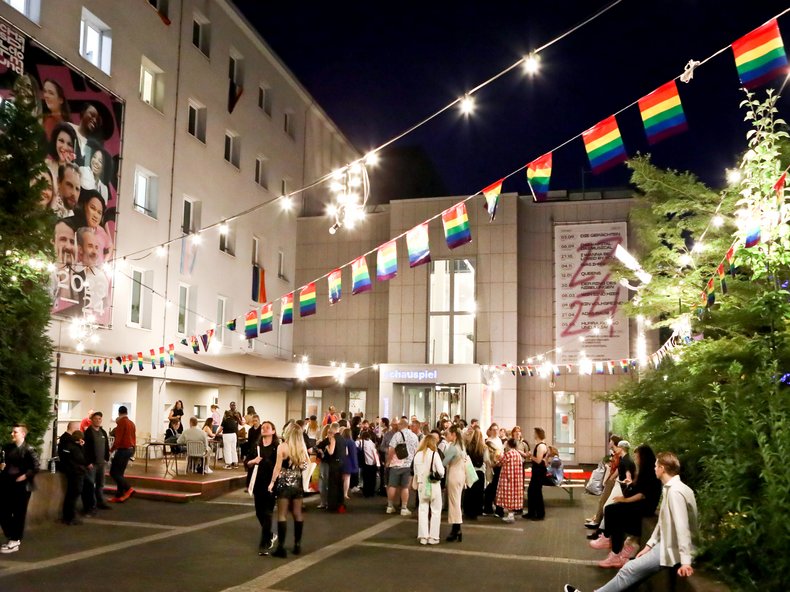 Ab 18.23 Uhr lädt das Schauspiel ein, gemeinsam mit dem Publikum Iftar zu feiern, um den Moment des Zusammenkommens am Ende des Fastentags mit Essen und Musik zu genießen und zu zelebrieren. Um 19.30 Uhr veranstalten der Migrantinnenverein Dortmund und der Sprechchor Dortmund das gemeinsame Konzert "Die Stimme der Frau", ein mehrsprachiges und vielstimmiges, musikalisches Projekt, das Werke mit sowohl nahöstlichen als auch europäischen Perspektiven auf die Stellung der Frau und das gesellschaftliche Zusammenleben reflektiert. Der Tag klingt im Foyer bei Musik, Getränken und Gesprächen aus.