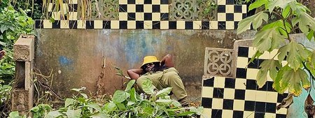 Beim performativen Listening Walk „EINGANG FUER ZUHOERER“ erkunden Besucher*innen die Innen- und Außenbereiche des Alten Gerichts mit der Frage, wie Architekturen des Gehorsams klingen.