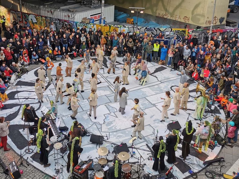 Den Festival-Auftakt macht am 10. Juli die Outoor-Performance Der Turm stürzt ein! – das Anti-Big-Tech-Musical wurde 2023 aus Protest gegen den Einzug von Amazon an der Warschauer Brücke uraufgeführt – nun erfährt es seine Fortsetzung bei freiem Eintritt auf dem Rosa-Luxemburg-Platz.