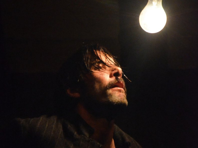 Auf der anderen Seite hängt er an seinem Heim: "Ich und der Bau gehören zusammen. Nichts kann uns auf die Dauer trennen." Das seltsame Wesen lebt in einem gedanklichen Labyrinth. Durch diesen Kreuzzug entsteht ein Ausnahmzustand. Max Simonischek lässt packend deutlich werden, wie stark er sich vor möglichen Eindringlingen und Fremden fürchtet. Er ist gefangen in sich selbst. Da tun sich plötzlich bürokratische Hierarchien auf, die er nicht mehr beherrschen kann. Bei Kafka gibt es einen philosophierenden Hund oder den paranoiden Dachs, der sein Unwesen treibt. So entsteht hier im kargen Bühnenbild von Besim Morina (Kostüm: Menachem Basman) und mit spärlicher Beleuchtung eine beklemmende Parabel über eine Gesellschaft, die nicht beherrschbar ist. Verzweifelt wühlt der Protagonist im Sand, glaubt ständig, das unheimliche Tier zu hören, das sich aus der Erde herausgräbt. Der Realitätssinn geht dabei immer mehr verloren.