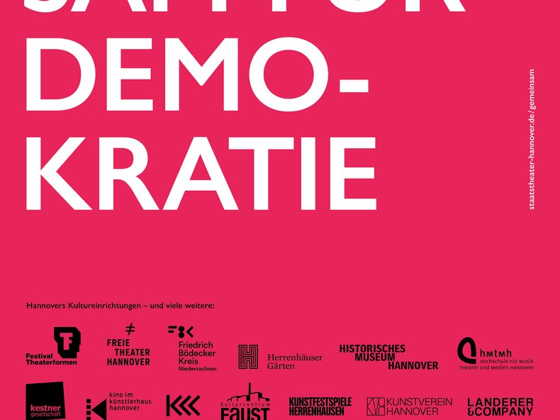 Dieser Verantwortung geben nun rund 50 Kultureinrichtungen in Hannover ein gemeinsames Gesicht. Mit den Slogans „Gemeinsam für Demokratie“ und „Zusammen gegen den Hass“ sind ab dem 12. Februar in Hannovers Innenstadt Plakate und Banner zu entdecken. Sie sollen sichtbar machen, dass Hannovers vielfältige und lebendige Kulturlandschaft ein verlässliches Rückgrat der Demokratie ist.