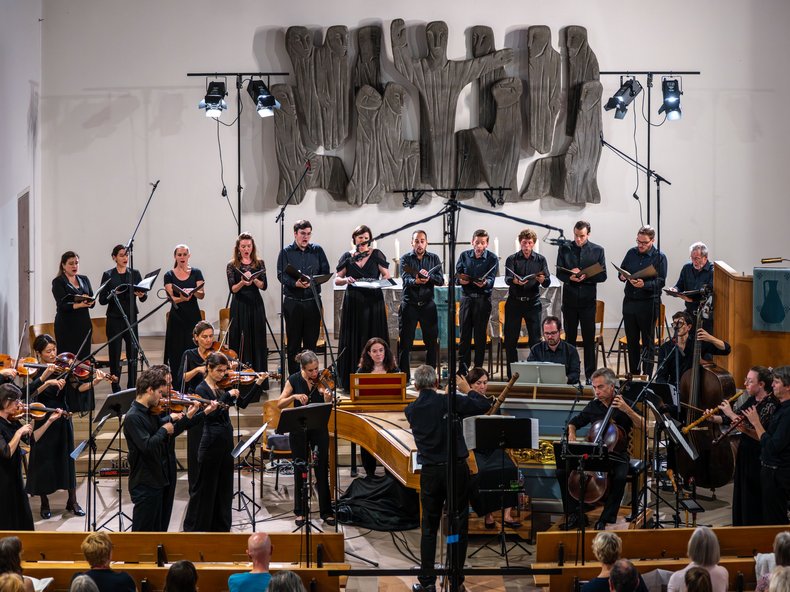 In rasantem, ja atemberaubendem Tempo kam zuletzt die Kantate "Es erhub sich ein Streit" BWV 19 daher, deren Fugenthema immer wieder reizvoll aufblitzte. Chromatische Spitzfindigkeiten meisterte nicht nur der Chor der Gaechinger Cantorey hier in grandioser Weise. Die siegreichen Scharen des Erzengels Michael zogen dabei mit großer dynamischer Vehemenz gegen Satan zu Felde. Und der famose Bassist Matthias Winckhler fing den harmonischen Sturm mit ruhigeren Kantilenen wirkungsvoll auf.