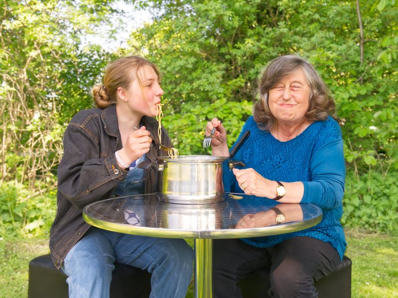 Der Marburger Plattenbau, der „Affenfelsen“, bietet für sie eine authentische Kulisse des ostdeutschen Charms und eine besondere alternative Rezeptionsform, über die übliche Theaterbühne hinaus. Das Hochaus als (Bühnen-)Raum schafft die Möglichkeit der räumlichen sowie inhaltlichen Verdichtung, ein Aufeinandertreffen, ins Verhältnis setzen und auch eine Zuspitzung der verschiedenen Erfahrungen wird möglich.