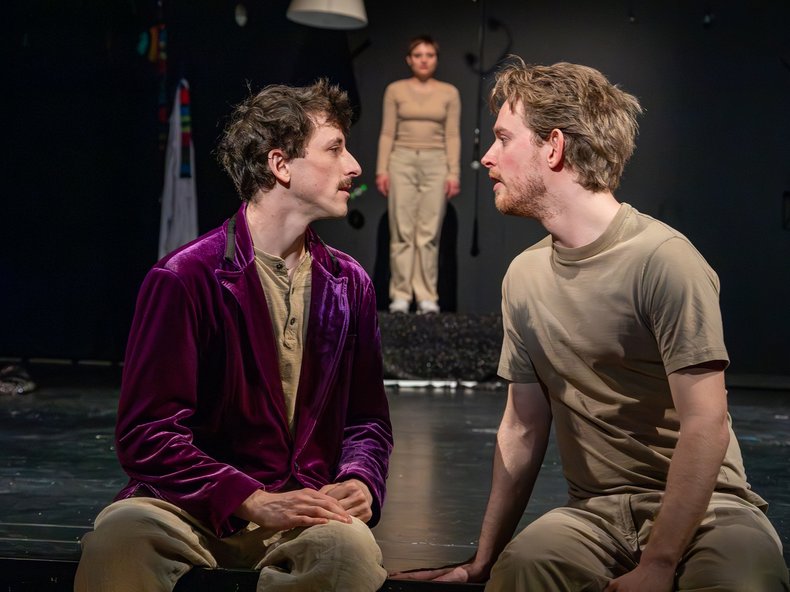 Carl-Christian Elze philosophiert über die Zeit "vor 13,8 Milliarden Jahren", man rezitiert Ernst Jandl mit "fortschreitende räude". Es gibt sogar einen Ausschnitt aus Marcel Beyers "Flughunde": "Nur wenige Stimmen in dieser Welt sind narbenlos". Jörg Piringer fragt: "Hallo ist da jemand?" Da wird dann irgendwann alles auf den entscheidenden Punkt gebracht: "Es ist schwierig, eine Antwort auf die Frage zu finden, was menschlich ist." Weiter heißt es: "Meinen wir die gleichen Menschen? Richtet sich Menschlichkeit, also Fürsorge, Würde, Moral, Milde und Erbarmen an alle Menschen?" Erich Kästners "Ballade vom Nachahmungstrieb" sorgt für Schmunzeln. Die KI-Stimmen von Janis Hanenberg, Annemarie Klemm und Hannah Wehrum werden überzeugend in den dramaturgischen Ablauf integriert. Und auch Rahel Ehret, Janis Hanenberg, Annemarie Klemm und Jonathan Wiese verbinden als Künstler in suggestiver Weise Stimmen und Schauspiel. Hinzu kommen Amaya Brandt, Michelle Dinkelacker, Tabea Kümper und Lilly Maria Städele als versiertes Tanzensemble der Kunstschule Labyrinth Ludwigsburg.