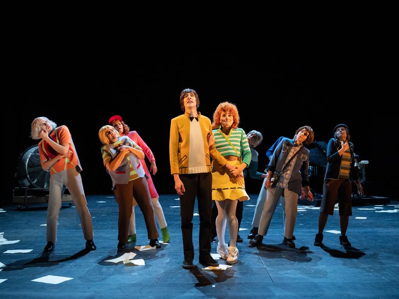 Dabei kommt es auf der Bühne zwischen einer gelb-blauen Kulisse, einem großen Klavierflügel und verschiedenen Utensilien zu erheblichen Turbulenzen, die der auch für die Bühne verantwortliche Regisseur Herbert Fritsch trotz einiger szenischer Abstriche recht wirkungsvoll in Szene setzt (Kostüme: Bettina Helmi). Da sieht man sogar den an Seilen hängenden Intendanten vorbeifliegen. Der von Sebastian Röhrle gewieft verkörperte Chefdramaturg Ivan Eisenstern verblüfft dabei mit kuriosen eigenen Plänen, die es in sich haben. Er plant einen Putsch, um das in seinen Augen fehlgeleitete Theater unter seine Führung zu bekommen. Aber so recht will dies nicht gelingen, denn der Generalintendant Geldoff entwischt diesen Plänen trotz des immer heftiger ausbrechenden Tohuwabohus mit Geschick. Seine Gegner verschwinden nämlich zuletzt in der Tonne. Diese Tour de Farce besitzt aber auch einige reizvolle Nebenschauplätze.