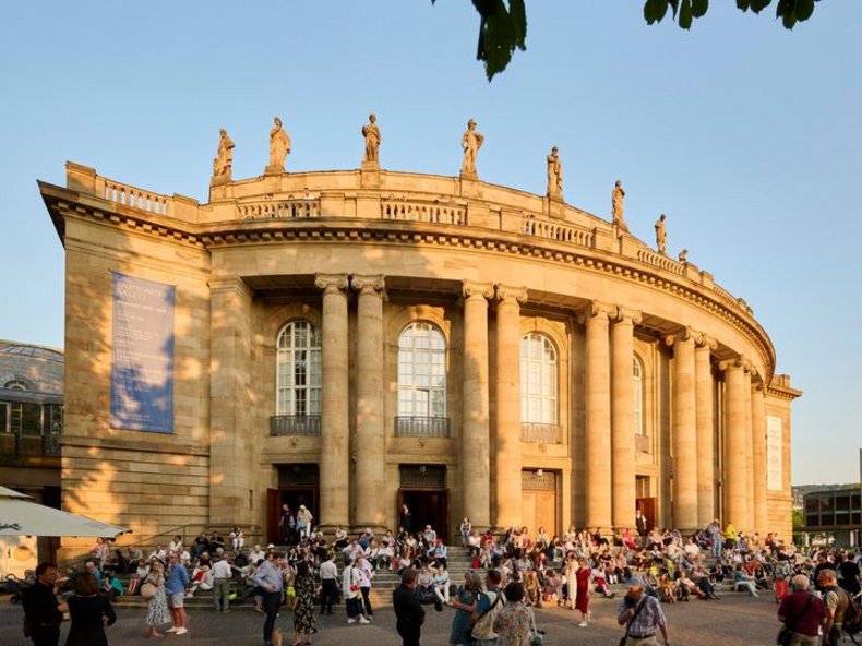 Außerdem sind Neukompositionen von Johanna Doderer, Born in Flamez und Stefan Schneider zu hören. Die musikalische Leitung hat die schwedische Dirigentin Marit Strindlund. Die letzte Neuproduktion im Opernhaus in der Spielzeit 24/25 ist die Uraufführung von "Der rote Wal" am 18. Juni 2025. Hier wird vom "Deutschen Herbst" als Märchen über Widerstand und Gewaltmonopole erzählt. Das Libretto schreibt der als Maeckes bekannte Rapper, Singer-Songwriter und Texter Markus Winter. Die Musik ist von Vivian und Ketan Bhatti. Aus dem Ensemble der Staatsoper Stuttgart sind Matthias Klink, Josefin Feiler und Stine Marie Fischer zu hören.