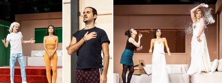 Die direkte Verbindung von Wort und Musik triumphiert in den Melologen von Gomatz im ersten Akt und dem Sultan im zweiten Akt. Nur in Mozarts Schauspielmusik "Thamos" kommen diese Melologe nochmals vor. Hinzu kommen hier die Lieder der Selbstermächtigung, die Eva Jantschitsch für dieses Ensemble geschrieben hat. Diese Komponistin orientiert sich an Mozarts Melologen. Da heißt es dann: "Bin stiller Zeuge deiner Tränen, deiner Kämpfe, deiner Angst..." Hinzu kommt noch als Erzählkollektiv ein Chor, der manchmal die exotischen und orientalischen Momente verstärkt - wenn etwa die Gruppe mit einem hellblauen Tuch zugedeckt wird.