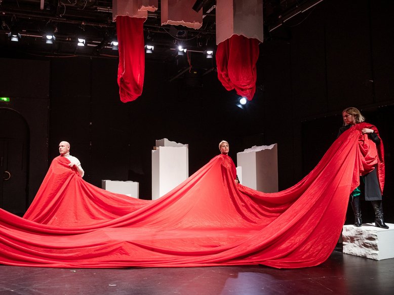 In seiner 1691 geschaffenen »Schauspiel-Oper« hätte Komponist Henry Purcell kein sinnlicheres Bild finden können als das der zu Eis erstarrten Welt. Im legendären »Cold Song« ist die Liebe entwichen, die Katastrophe längst eingetroffen. In der Inszenierung aber kämpfen die Übriggebliebenen weiter: gegen die gewaltsame Verrohung, gegen einsamen Individualismus und für mehr Gemeinschaft und Empathie – poetisch vergrößert durch die Worte von Lyriker:in Kae Tempest aus dem Langgedicht »Let Them Eat Chaos«. Regisseur Marco Štorman und sein Team entwickeln mit Purcells verführerischer Barockmusik und den atmosphärischen Sprach-Klangwelten von Kae Tempest eine sinnlich-spielerische Übertragung von »King Arthur«, eine Feier des Lebens.