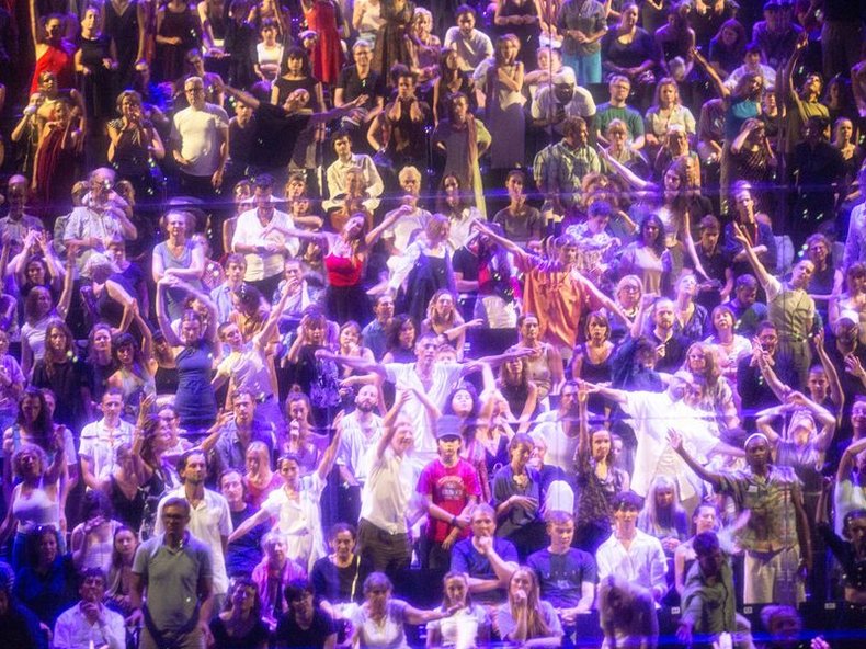 Langsam gerät das Publikum gemeinsam mit den Tänzer*innen in Bewegung. So entsteht ein kollektives Bewegtbild – als Metapher für das menschliche Gehirn und die Beziehung zwischen Individuum und Gemeinschaft. Die dokumentarische Recherche bezieht Perspektiven aus Hirnforschung, Biologie, Soziologie und künstlicher Intelligenz ein, die das Publikum in einer Soundcollage hört und erlebt.