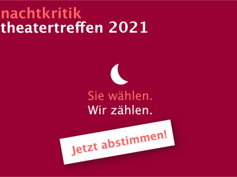 Die Auswahl stammt aus dem Zeitraum 12. Januar 2020 bis 23. Januar 2021. Leser*innen sind nunmehr aufgerufen, Ihre Herzensarbeiten zu wählen, von denen die Top10 als nachtkritik-Theatertreffen-Tableau am 3. Februar 2021 präsentiert werden.