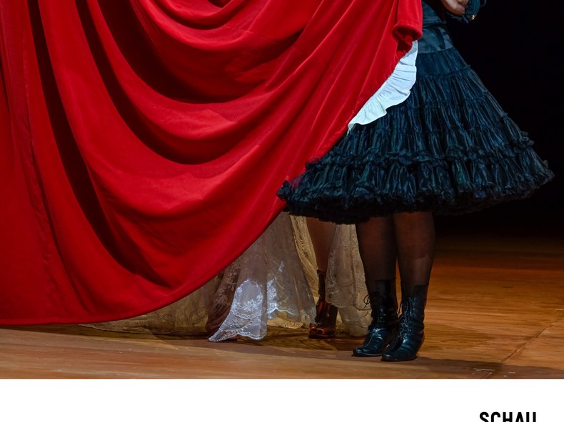 Rote Vorhänge und durchsichtige Spiegel beherrschen die Szene, die sich optisch immer wieder verändert. Zu Beginn hängen die Protagonisten in der Luft, wirken hilflos und überfordert. Die unglückliche Liebe des Herzogs Orsino zur Gräfin Olivia erlebt im Laufe der Handlung viele eigentümliche Verwandlungen. Viola dient ihm nur als Liebesbotin, die auf hoher See ihren Zwillingsbruder verlor und die es jetzt nach Illyrien verschlagen hat. Sie leistet als Page Cesario verkleidet bei ihm ihre Dienste. In den angeblich hübschen Jüngling verliebt sich nun Olivia, während Viola in Liebe zu Orsino verfällt. Die raffinierte Verwechslungskomödie wird in der Inszenierung von Burkhard C. Kosminski in subtiler Weise auf die Spitze getrieben. Im weiträumigen Bühnenbild von Florian Etti und mit den Kostümen von Ute Lindenberg können sich die Protagonisten überzeugend entfalten.