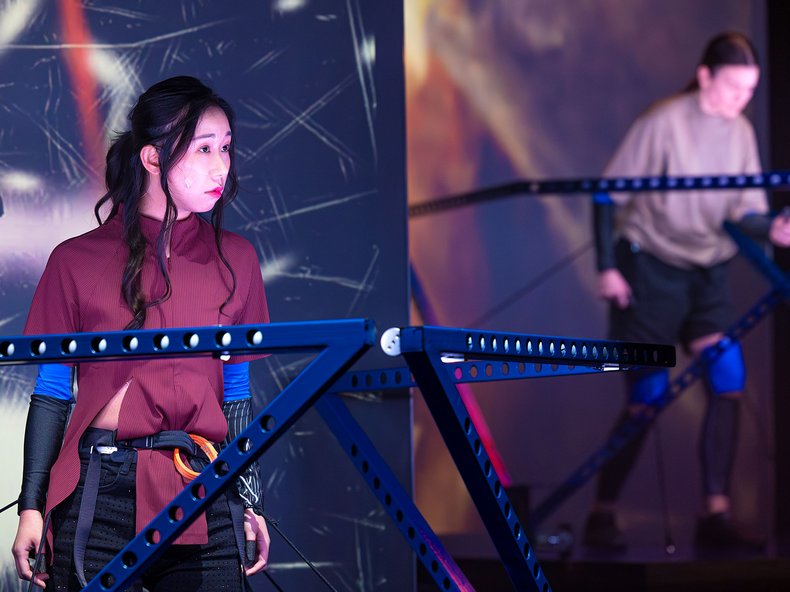 In dieser kapitalistischen Unterwelt, einem Dark Space, wo Drogenexzesse, Doping-Versuche und der unstillbare Wunsch nach Unterhaltung regieren, lösen sich mit der Zeit auch die Grenzen der Körper und Geschlechter auf. Livemusik und Elektronik, reale und digitale Aktionen, parallele Wahrheiten verschwimmen miteinander. Es entsteht eine Liebesgeschichte, von der wir am Ende nicht wissen, ob sie tatsächlich stattfindet oder nur eine aus der Sehnsucht geborene Fiktion bleibt.