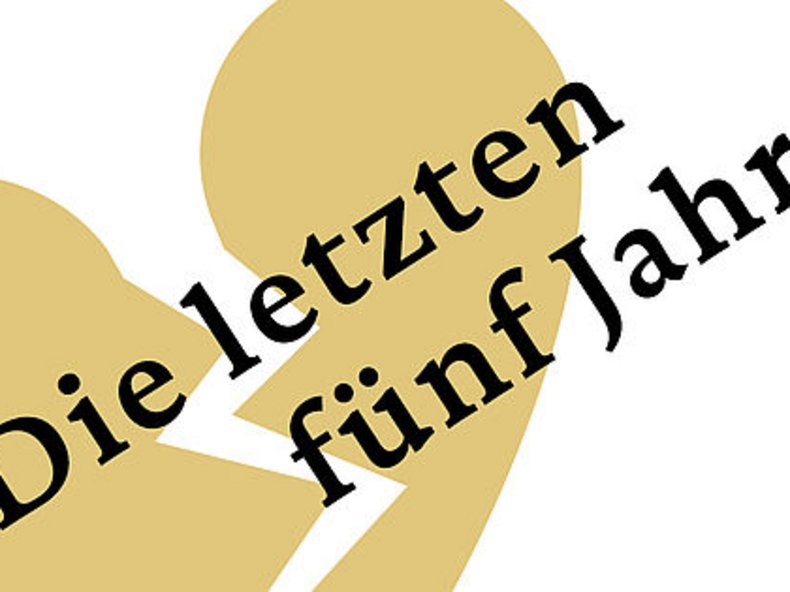 Raffiniert erzählt der mit einem Tony Award ausgezeichnete amerikanische Komponist Jason Robert Brown in seinem intimen Kammermusical ‚Die letzten fünf Jahre‘ die Liebesgeschichte von Cathy und Jamie – zwei New Yorkern, die sich innerhalb von fünf Jahren Hals über Kopf ineinander verlieben, heiraten und dann doch getrennte Wege gehen. Während der aufstrebende Schriftsteller Jamie die Geschichte chronologisch schildert, lässt Schauspielerin Cathy, deren Karriere nicht so recht in Gang kommen will, die gemeinsame Beziehung rückwärts Revue passieren.