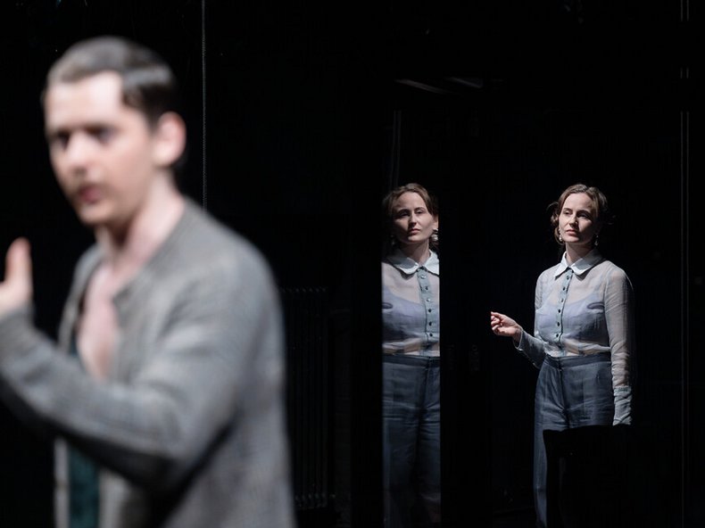Der Verweis zur Tierwelt ist hier kein Zufall, immerhin sind geschlechterfluide Spezies gerade unter Fischen Normalität. Diesem Motiv folgend spielen auch die von den historischen Epochen und Stilen des Romans inspirierten Kostüme (ebenfalls Keiko Nakama) mit der Fluidität von Geschlecht. Im Spiel mit den Ebenen verflechtet Milica Čortanovački den Inhalt des Romans darüber hinaus mit Woolfs berühmtem Essay »A Room of One’s Own« (»Ein Zimmer für sich allein«) und beleuchtet in ihrer Inszenierung somit auch den Schaffensprozess der Autorin Woolf.
