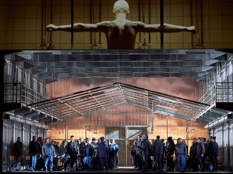 Teil des Bühnenbildes ist ein Gefängnis – inspiriert von einer maison centrale, einer französischen Gefängnisanlage, in der die sogenannten Hoffnungslosen, oft Angehörige ethnischer oder religiöser Minderheiten, interniert und damit sich selbst überlassen werden. Diese szenische Ortswahl sieht Kirill Serebrennikov symbolisch: