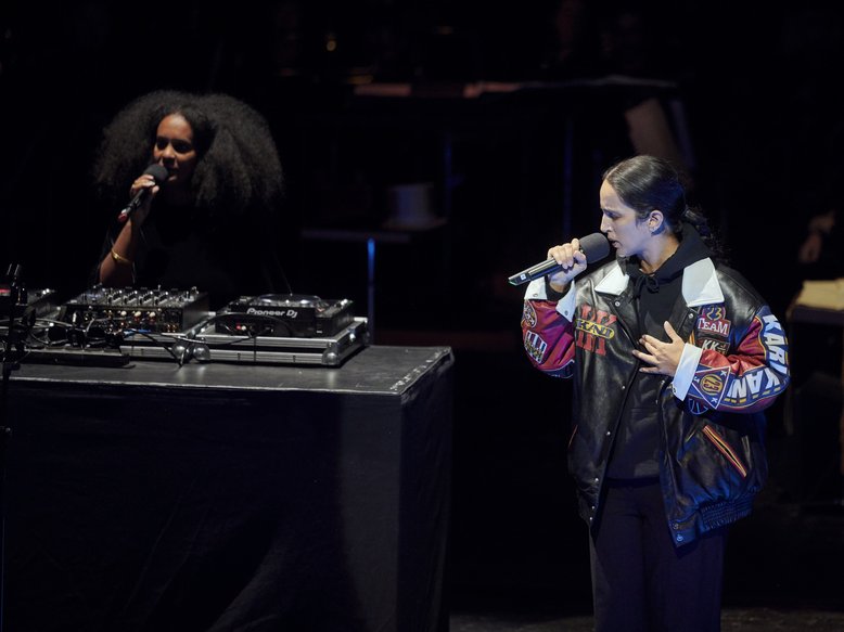 Von PeterLicht erklang wieder im Arrangement von Boris Rogowski und David Menke das üppig instrumentierte Orchesterstück "Sonnendeck", das er auch wiederum selbst sang. Die feministische Rapperin Ebow präsentierte ihre fetzigen Stücke "Dersim62", "Excalibur" und "Prada Bag" mit Sarkasmus und Ironie. Von John Adams erklang das von einem irisierenden Streicherteppich dominierte Orchesterstück "Shaker Loops", das auch ganz entfernt an Philip Glass und Steve Reich erinnerte. Trotz der Nähe zur Minimal Music verlor Adams hier nie das tonale Fundament. PeterLicht sang zusammen mit Josefin Feiler (Sopran), Moritz Kallenberg (Tenor) und Goran Juric (Bass) und suggestiv begleitet vom Staatsorchester Stuttgart seine Eigenkomposition "Dämonen" im durchsichtigen und einfallsreichen Arrangement von Boris Rogowski und David Menke.