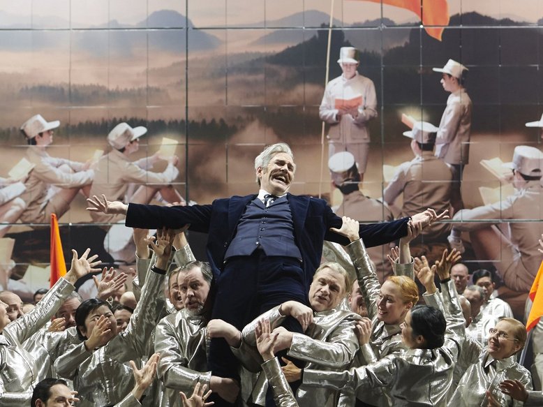 In raffinierten Bildern mit Film-Sequenzen folgt dann die fast groteske Glorifizierung von Madame Mao. Im dritten Akt wird der letzte Abend des Staatsbesuchs zu einem reizvollen Kammerspiel, bei dem der Dirigent Andre de Ridder auf der Bühne agiert und ein unsichtbares, vom Band eingespieltes Orchester leitet. Der Euphorie folgt die Ernüchterung zwischen Rauch und geheimnisvollen Pferdeköpfen. Man sieht in einer Filmaufnahme den US-Präsidenten Richard Nixon und hört dessen Stimme. Und die Protagonisten verlieren sich in Erinnerungen an die eigene Vergangenheit.