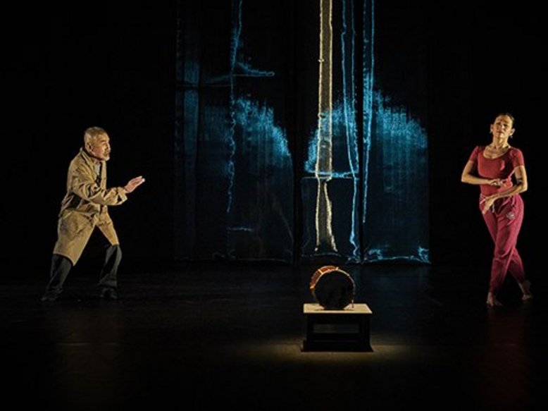 Die jüngste Theaterarbeit des legendären Schauspielers Yoshi Oida, der viele Jahre mit Peter Brook gearbeitet hat. Yoshi Oida, 87-jährig, spielt und tanzt gemeinsam mit der Tänzerin Kaori Ito. „Die Seidentrommel“ ist sein theatrales Vermächtnis.