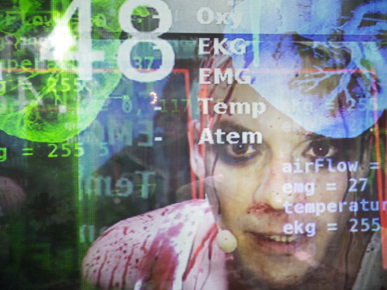 In ihrem Text „4.48 Psychose“ seziert die Autorin Sarah Kane Fleisch und Geist einer Erkrankung, der Depression, die selbst Aufgeklärte zutiefst irritiert. Sie lauscht auf den Puls eines Leidens, das irgendwo zwischen Biochemie, Psychologie und Philosophie angesiedelt scheint. An dieser Schnittstelle von Körper und Geist, analogen Daten und digitalen Impulsen setzt Kay Voges‘ Inszenierung an. Neben den drei Schauspieler_innen Björn Gabriel, Uwe Rohbeck und Merle Wasmuth stehen die Software-Ingenieure Stefan Kögl und Lucas Pleß sowie Musiker Tommy Finke, Videokünstler Mario Simon, Toningenieur Chris Sauer und Dramaturgin Anne-Kathrin Schulz auf der Bühne, um einen Mensch/Maschine-Knoten aus Körpersignalen wie Herzschlag, Körpertemperatur und Atemfrequenz mit Sound- und Videosignalen zu kreieren.