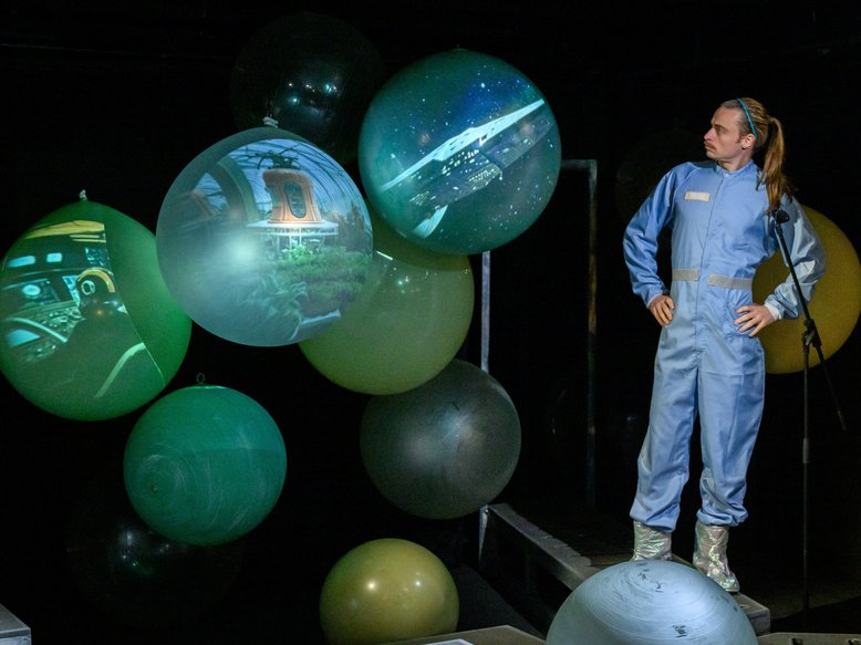 In der Inszenierung von Nadine Klante und der opulenten Ausstattung von Michaela Springer befinden wir uns tatsächlich im Weltall und erkennen einige Planeten. In diesem letzten großen Schritt wird die Menschheit auf dem Generationenschiff GRANDA PASO zu einem neuen Planeten fahren, der auch bewohnbar ist. Hitzewellen, Missernten und Stürme sind endgültig vergessen. Proxima Centauri B heißt dieser Hoffnungsträger, der den Menschen eine neue Zukunft geben soll.