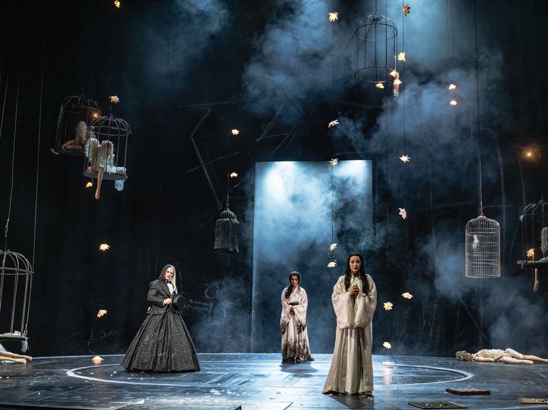 Aufgrund einer stimmlichen Indisposition konnte Lavinia Dames die Tschang-Haitang nur szenisch darstellen, Pauliina Linnosaari aus dem Karlsruher Ensemble sprang für den Gesang ein und meisterte die Aufgabe bravourös. Das hätte fast als Inszenierungsidee durchgehen können! Mit anmutiger Sensibilität spielte Lavinia Dames. Insgesamt lieferte das Ensemble eine mehr als überzeugende Leistung und die Düsseldorfer Symphoniker unter der Leitung von Hendrik Vestmann spielten klar und eindrucksvoll.