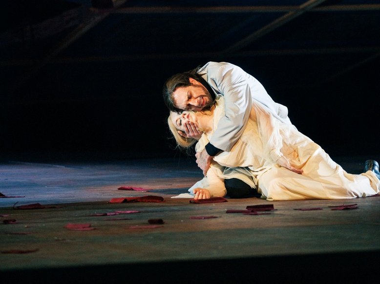 Für das Stück wurde eine ungewöhnlich große Statisterie gecastet - 20 Personen aus unterschiedlichen gesellschaftlichen Lebenswelten. Anfangs stellen sie Pilger da, die mit dem Kreuz auf Sinnsuche sind. Sie finden Schutz im Gebet, aber bei den Venusberg-Motiven fallen sie übereinander her. Ungewöhnlich ist auch die Figur Wolfram von Eschenbachs gezeichnet, der Elisabeth während seiner berühmten Arie "O du mein holder Abendstern" umarmt. Später wird ihn dann Venus verführen.