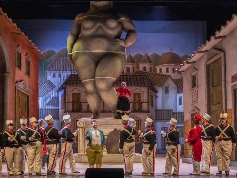 Im Opernhaus Düsseldorf öffnet sich am Samstag, 19. August 2023 der Vorhang zu Gaetano Donizettis Gute-Laune-Stück „La fille du Régiment“. Die romantische Komödie gehört zu den Kunstschätzen im Repertoire der Deutschen Oper am Rhein: Für die groteske Inszenierung von Emilio Sagi hat Fernando Botero, einer der bekanntesten bildenden Künstler Lateinamerikas, im Jahr 2000 das Bühnenbild und die Kostüme entworfen. Frisch einstudiert, mit ihrem besonderen Charme und unter der musikalischen Leitung von Antonino Fogliani ist sie bis zum 14. September im Opernhaus zu sehen.