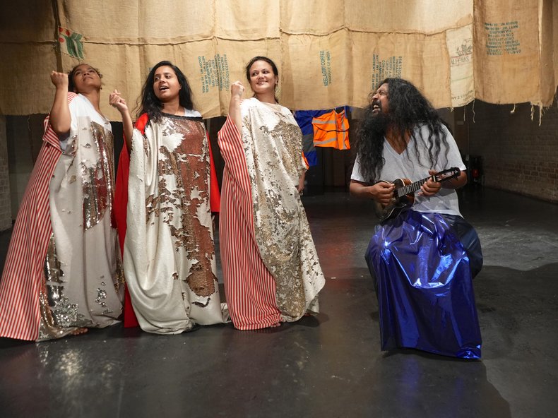 „SWEAT – Smells of Labour“ untersucht mit Mitteln von Tanz, Musik und olfaktorischer Performance Schweiß im Kontext von Konsum, Arbeit, sozialer Klasse und neokolonialen Handels- und Produktionsbeziehungen. Arbeiterlieder und Percussion treffen auf elektronische Soundscapes. Gerüche bestimmen Tanz und Storytelling, die Performer*innen übersetzen sinnliche Wahrnehmung in bewegte Impulse. „SWEAT“ geht eine intensive transnationale Recherche vor Ort in München, Kalkutta und Howrah District voraus, historisch eines der wichtigsten industriellen