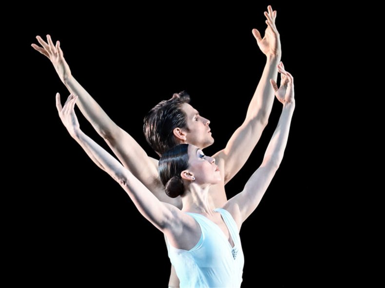 Ein ausdrucksstarker Pas de deux beherrscht "Two Pieces For Het" mit der subtilen Musik von Erkii-Sven Tüür ("Illusion") und Arvo Pärt ("Psalom"). Da spürt man auch die elektrisierende innere Bewegungskraft der beiden Tänzer Mackenzie Brown und Marti Paixa. Klare Linien herrschen trotzdem vor, was typisch für Hans van Manen ist. Bühne und Kostüme von Keso Dekker lassen Tanz und Musik ganz zusammenwachsen. Die Choreografie zu "Trois Gnossiennes" von Erik Satie besitzt ebenfalls einen fast magisch wirkenden Pas de deux, der den Tänzern aber auch viel Freiraum lässt. Der Zauber arabisierender Melodik blitzt tänzerisch überaus leuchtkräftig hervor. Die Bühne von Jean-Paul Vroom und die Kostüme von Joop Stokvis schaffen unendliche Weiten, die auch das einfühlsame Solo-Piano von Chie Kobayashi wirkungsvoll einfängt. Die Tänzer Elisa Badenes, Friedemann Vogel, Anton Tcherny, Carlos Strasser und James Platts bilden eine magische Einheit.