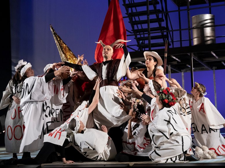Gesang, Tanzszenen, Zwischenspiele: Henry Purcells größtes Bühnenwerk »The Fairy Queen« aus dem Jahr 1692 ist eine kurzweilige »Semi-Opera«, also eine Halb-Oper, die dem adligen Publikum anregende Unterhaltung und Zerstreuung bieten sollte - am Staatstheater Augsburg präsentiert in einer üppigen Inszenierung, die musikalisch ebenso wie tänzerisch und optisch aus dem Vollen schöpft.