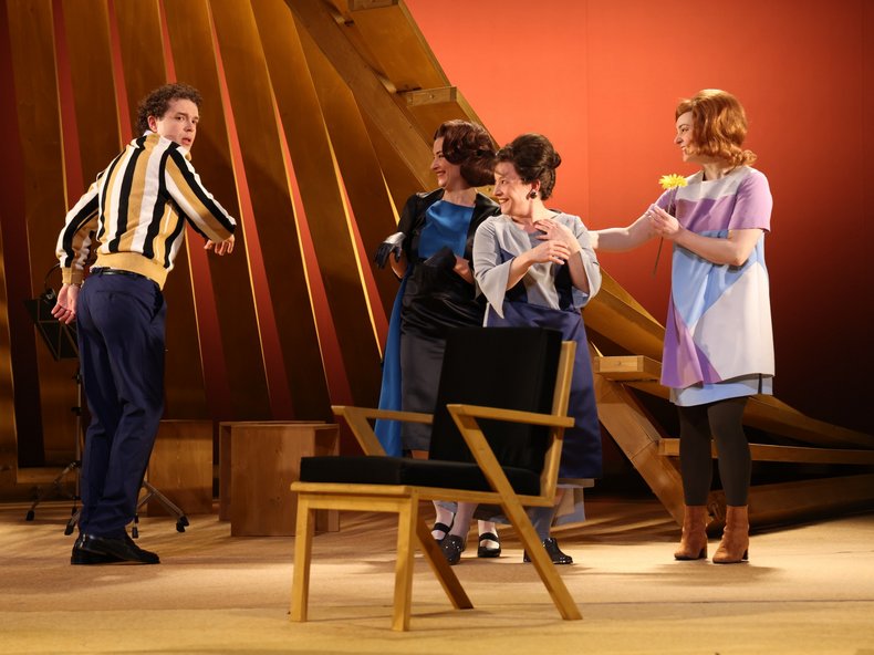 Durch die Verwendung eines besonderen Kunstobjektes von Swen Erik Scheuerling im Zentrum des Bühnenbildes, den eigenwillig mit Blick auf die Figurenpsychologie von Karina Liutaia gestalteten Kostümen, die auf kreative Art als mögliche Verortung die 1960er Jahre einer westdeutschen Provinzstadt assoziieren lassen, betont die Inszenierung von Francis Hüsers einerseits den Kunstanspruch von Tschechows Drama, das zurecht als Beginn der (klassischen) Moderne gewertet werden kann, gewährt andererseits aber den Figuren einen konzeptionellen Rahmen, der erlaubt, ihre Fragestellungen auf uns heute zu beziehen.
