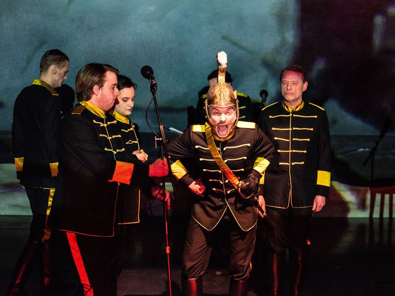 Der Regisseur und Theatermusiker Markolf Naujoks erarbeitete selbst die Bühnenfassung und lässt sechs Schauspieler*innen die (Ab-)Gründe von Heßlings Entwicklung zum Prototyp eines »Untertans« erforschen. Er arbeitet seit 2013 regelmäßig am Theater und Orchester Heidelberg, zuletzt entstanden hier seine Bühnenadaptionen von »Kleiner Mann – was nun?« und »Das kalte Herz«. Und es wird wieder musikalisch: