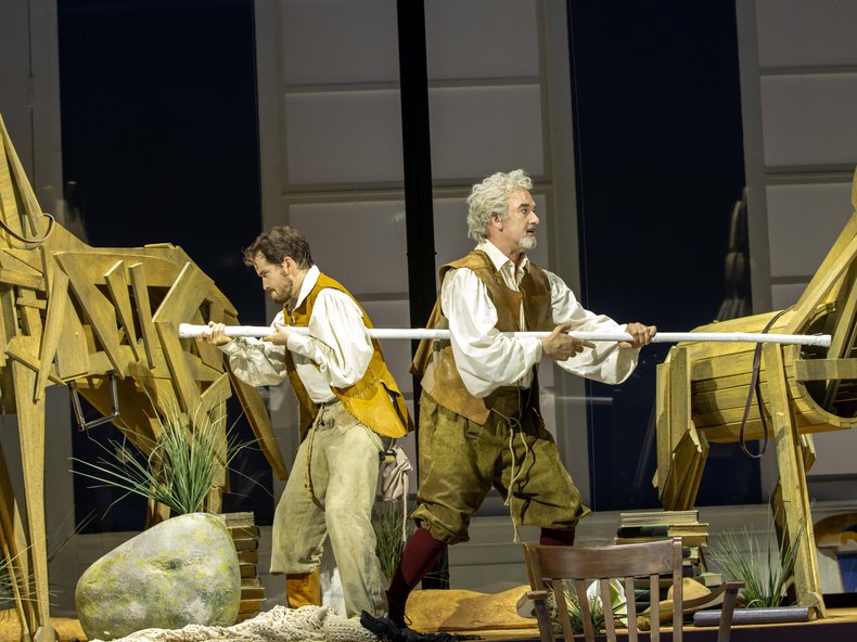 Don Quixote (Gregor Dalal), Sancho (Mark Watson Williams), Aldonza (Nana Dzidziguri), Gastwirt (Enrique Bernardo), Padre (Youn-Seong Shim), Dr. Carrasco (Lars Hübel), Antonia (Melanie Spitau), Barbier (Enrique Bernardo), Haushälterin (Katarzyna Grabosz), Maultiertreiber (Frank Göbel/ Juan Sebastián Hurtado Ramírez/ Kiyotaka Mizuno/ Ki-Hwan Nam/ Jae Joon Pak/ Valmar Saar),